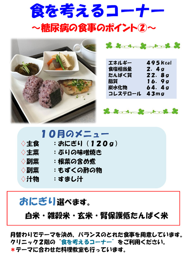 食を考えるコーナーでは、毎月料理教室を開催して、食材の選び方・料理の工夫・買い弁当・外食選びのポイントなど、食生活に役立つ情報を提供しています。ここでは、毎月のレシピをご紹介していきます。
